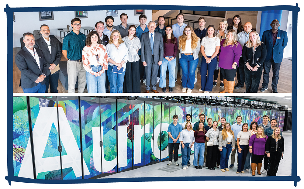 CCLP fellows with Argonne National Lab Director Paul Kearns (top) and the Aurora supercomputer (bottom).